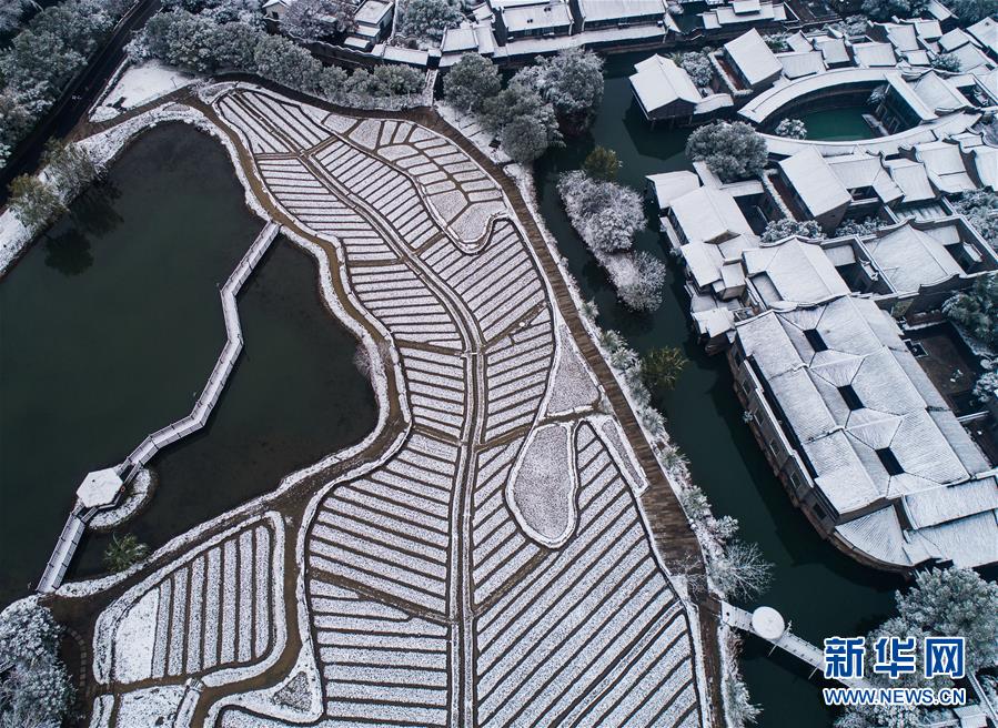 12月9日,空中俯瞰被白雪覆蓋的烏鎮(zhèn)景區(qū)(無人機拍攝)。 受冷空氣影響,浙江省桐鄉(xiāng)市迎來大范圍降雪,千年古鎮(zhèn)烏鎮(zhèn)被厚厚的白雪覆蓋。小橋流水、白墻黑瓦的江南水鄉(xiāng)古鎮(zhèn),呈現(xiàn)出冬日雪鄉(xiāng)的獨特韻味,吸引各地游客前來觀賞。 新華社記者 徐昱 攝