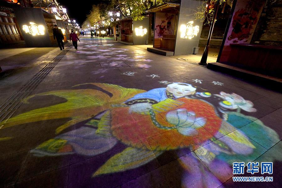 楊柳青年畫主題燈光布滿在天津楊柳青古鎮(zhèn)步行街上(12月4日攝)。 運河穿城過,古鎮(zhèn)草色新,千年畫鄉(xiāng)楊柳青自傳統(tǒng)中浸潤出與眾不同的顏色。40年斗轉(zhuǎn)星移,這個沉淀千年的小鎮(zhèn),用別樣的風(fēng)姿講述了一個歷史與現(xiàn)在碰撞而出的改革“新”故事。 新華社記者岳月偉攝