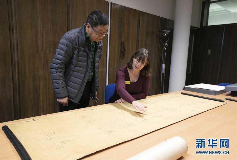 11月2日,在英國(guó)紐卡斯?fàn)柕奶┒鳌枡n案館,檔案管理員瑞秋·吉爾(右)向新華社記者介紹致遠(yuǎn)艦設(shè)計(jì)圖紙。 新華社記者日前在紐卡斯?fàn)柼┒鳌枡n案館查找北洋海軍史料時(shí)發(fā)現(xiàn)一套七張、檔案名為“中國(guó)巡洋艦舵機(jī)設(shè)計(jì)圖”的原始圖紙。塵封百年,甲午海戰(zhàn)中抗擊日艦后沉沒(méi)的清北洋海軍致遠(yuǎn)艦部分原廠設(shè)計(jì)圖紙?jiān)谄浣ㄔ斓亍?guó)紐卡斯?fàn)柺械囊患覚n案館首次被發(fā)現(xiàn),為打撈那段悲壯的歷史提供了重要參考。 新華社記者 韓巖 攝
