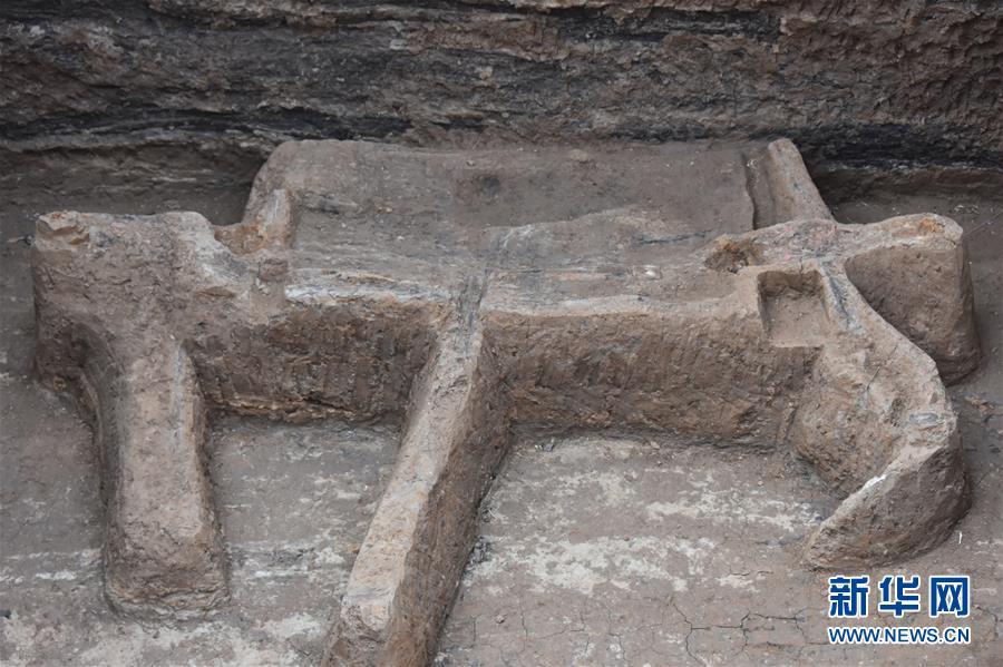 12月7日拍攝的吳山祭祀遺址內(nèi)發(fā)掘的車(chē)馬祭祀坑局部。 新華社記者都紅剛攝