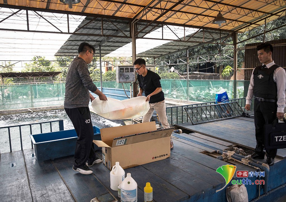 中國(guó)青年網(wǎng)2018年12月12日訊 由于這條錦鯉價(jià)格昂貴,錦鯉的原主人——“長(zhǎng)彥觀賞魚(yú)漁場(chǎng)”淘寶店主李長(zhǎng)彥請(qǐng)安保一路護(hù)送錦鯉。負(fù)責(zé)護(hù)送的天尊安保小哥透露,之前曾護(hù)送過(guò)明星、政要,也護(hù)送過(guò)貴重物品,但這是第一次護(hù)送一條魚(yú)。