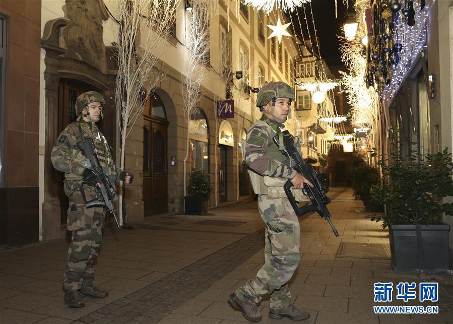 12月11日,士兵在法國斯特拉斯堡市中心的槍擊事件現(xiàn)場附近警戒。 新華社記者葉平凡攝