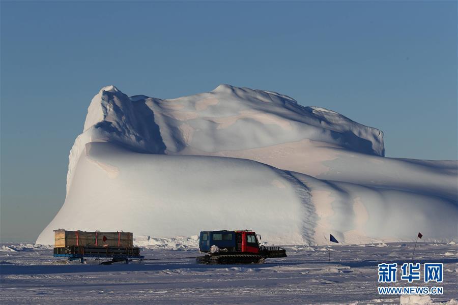雪地車隊拉著物資從“雪龍”號駛向中山站(12月2日攝)。 新華社記者 劉詩平攝