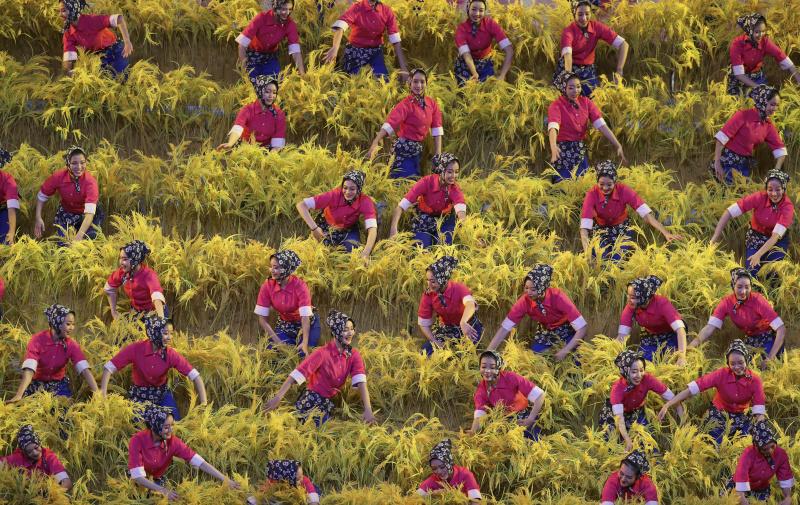 12月14日,慶祝改革開放40周年文藝晚會《我們的四十年》在北京人民大會堂舉行。這是節(jié)目《在希望的田野上》。新華社記者 丁海濤 攝