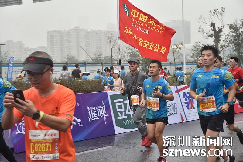 2018年12月16日,深圳國際馬拉松位于后海的折返點(diǎn),距離終點(diǎn)不遠(yuǎn)處,一位穿著八路軍服裝的選手正在沖刺。