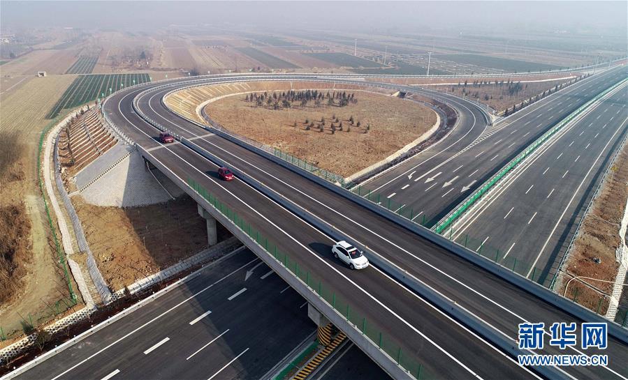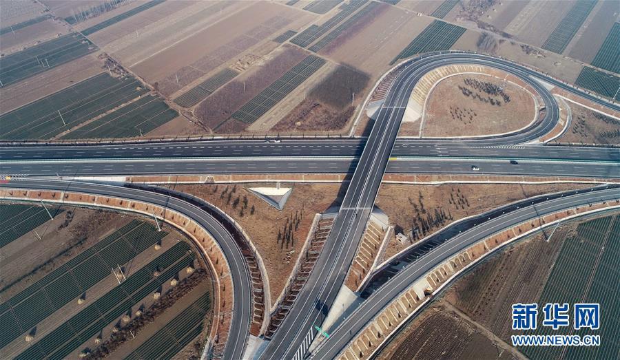12月16日無人機(jī)拍攝的京秦高速公路二期工程河北玉田西進(jìn)出口處的立交橋。 新華社記者楊世堯攝