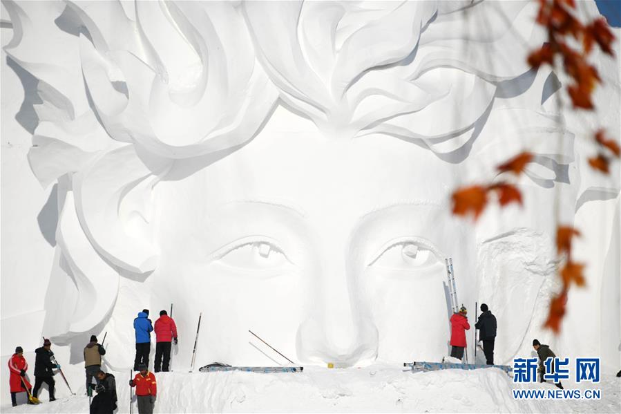 12月24日,雪雕師在制作太陽(yáng)島雪博會(huì)主塑“星河之旅”。 當(dāng)日,哈爾濱太陽(yáng)島雪博會(huì)主塑露出“芳容”。本屆雪博會(huì)主塑“星河之旅”長(zhǎng)106米,高32米,寬20米,用雪量達(dá)4萬(wàn)立方米。 新華社記者 王建威 攝