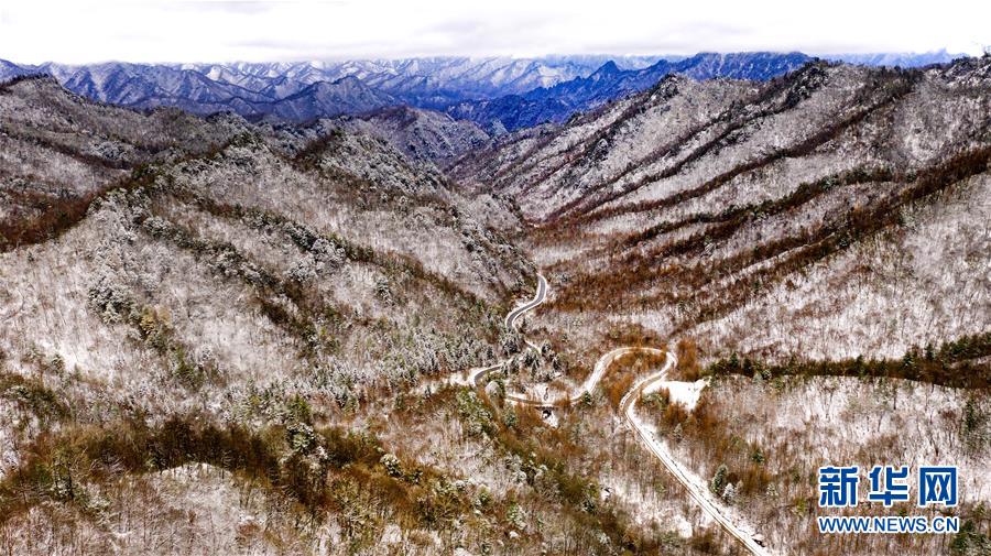 11月5日無人機拍攝的陜西省漢中市佛坪縣涼風埡景區(qū)雪景。