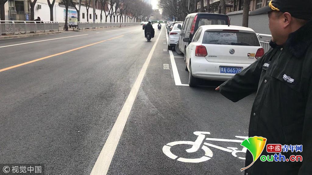 “你看看,自行車道被新劃的停車位占住了,路邊沒有停車還好,一旦有汽車,我騎車只能走快車道,基本沒有騎車的位置了?!笔忻駨埾壬f,“這里最多能容下一輛電動車通行,不走機(jī)動車道你說走哪?”