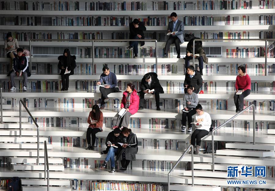 12月27日,讀者在天津?yàn)I海新區(qū)圖書館的閱覽室看書。 濱海新區(qū)圖書館位于天津?yàn)I海文化中心,2017年10月1日正式開館,設(shè)計(jì)立意為“濱海之眼”和“書山有路勤為徑”。圖書館現(xiàn)有藏書60多萬冊(cè),一年多來接待讀者約280萬人次,已成為濱海新區(qū)的文化“新地標(biāo)”。 新華社記者李然攝