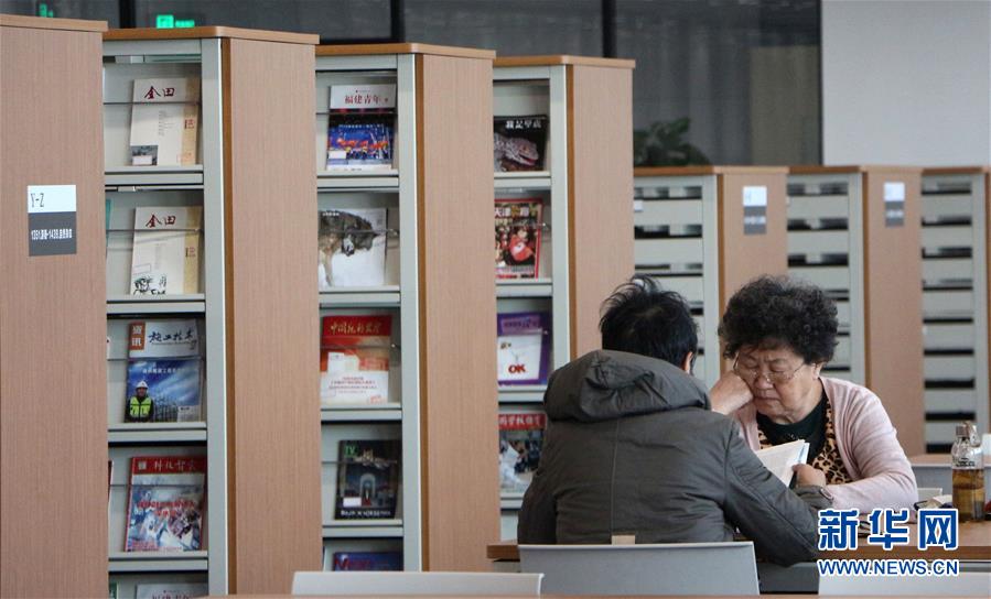 12月27日,在天津?yàn)I海新區(qū)圖書館,工作人員(左)在閱覽室中擺放圖書。 濱海新區(qū)圖書館位于天津?yàn)I海文化中心,2017年10月1日正式開館,設(shè)計(jì)立意為“濱海之眼”和“書山有路勤為徑”。圖書館現(xiàn)有藏書60多萬冊(cè),一年多來接待讀者約280萬人次,已成為濱海新區(qū)的文化“新地標(biāo)”。 新華社記者伍婧丹攝
