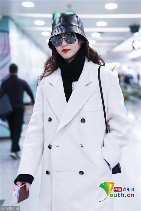 2018年12月27日, 唐嫣從北京飛往上?,F(xiàn)身機(jī)場。她身穿白色外套,戴黑色皮帽時(shí)髦max,低頭露幸福淺笑白到發(fā)光,獲粉絲送小禮物人氣爆棚。