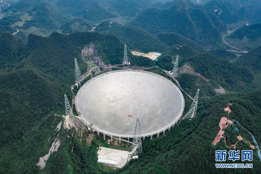 9月10日無(wú)人機(jī)拍攝的“中國(guó)天眼”全景。被譽(yù)為“中國(guó)天眼”的500米口徑球面射電望遠(yuǎn)鏡(FAST),經(jīng)過(guò)兩年的緊張調(diào)試工作,現(xiàn)已經(jīng)實(shí)現(xiàn)了跟蹤、漂移掃描、運(yùn)動(dòng)中掃描等多種觀測(cè)模式。