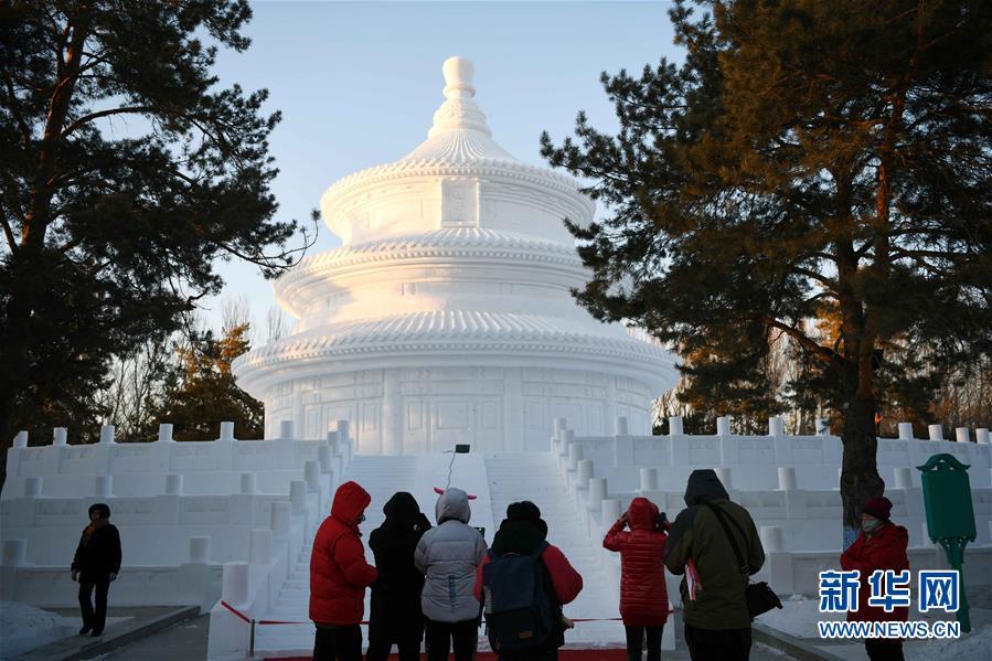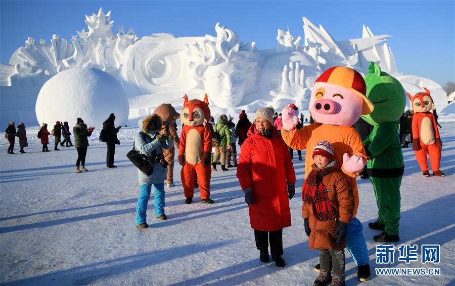 12月29日,在太陽(yáng)島雪博會(huì)園區(qū),游客在雪雕作品前留影。 當(dāng)日,第31屆哈爾濱太陽(yáng)島國(guó)際雪雕藝術(shù)博覽會(huì)正式開園。本屆太陽(yáng)島雪博會(huì)以“歡樂雪博會(huì)·夢(mèng)幻雪域游”為主題,占地90萬(wàn)平方米,分為五大景區(qū)。 新華社記者 王建威 攝