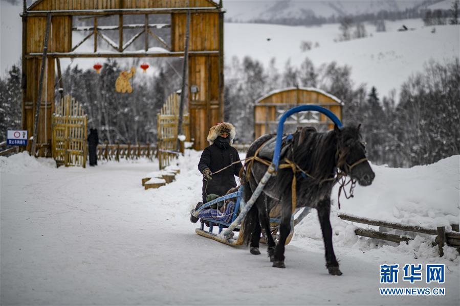 1月1日,在新疆禾木雪鄉(xiāng),當?shù)鼐用癖硌菅┑刭愸R。