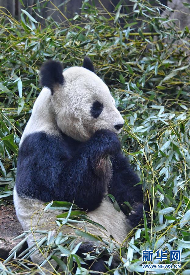 1月13日,大熊貓在北京動物園恒溫的熊貓館內(nèi)吃竹子。 新華社記者 李欣 攝