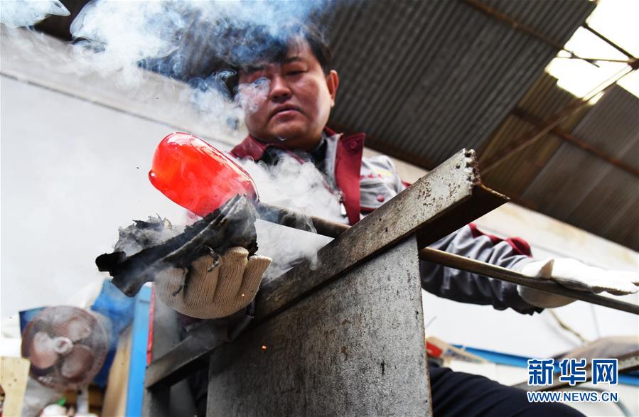 1月12日,孫云毅在制作雞油黃琉璃藝術(shù)品。 新華社記者王凱攝