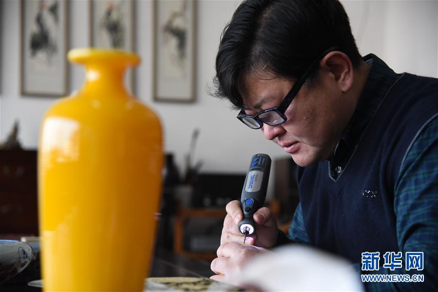 1月12日,孫云毅在為一只雞油黃鼻煙壺作畫。 新華社記者王凱攝