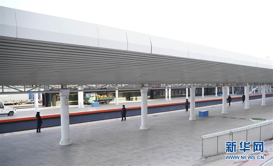 1月11日,在滿洲里火車站站臺,“金鑰匙”服務(wù)臺客運員在嚴(yán)寒中等待列車進站。