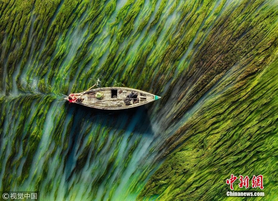中國(guó)新聞網(wǎng)1月14日訊(具體拍攝時(shí)間不詳),孟加拉國(guó)烏拉帕拉,漁船在水流和藻類(lèi)的映襯下前行,畫(huà)面看起來(lái)就像水彩畫(huà)一般。圖片來(lái)源:視覺(jué)中國(guó)