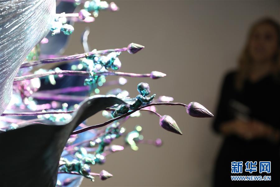 陳世英的作品《蓮子》局部(1月11日攝)。 新華社記者 吳曉初 攝