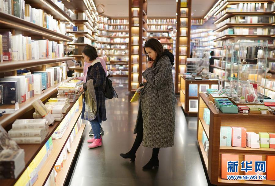 1月14日,讀者在西安高新區(qū)一家大型書店內(nèi)選購(gòu)書籍。