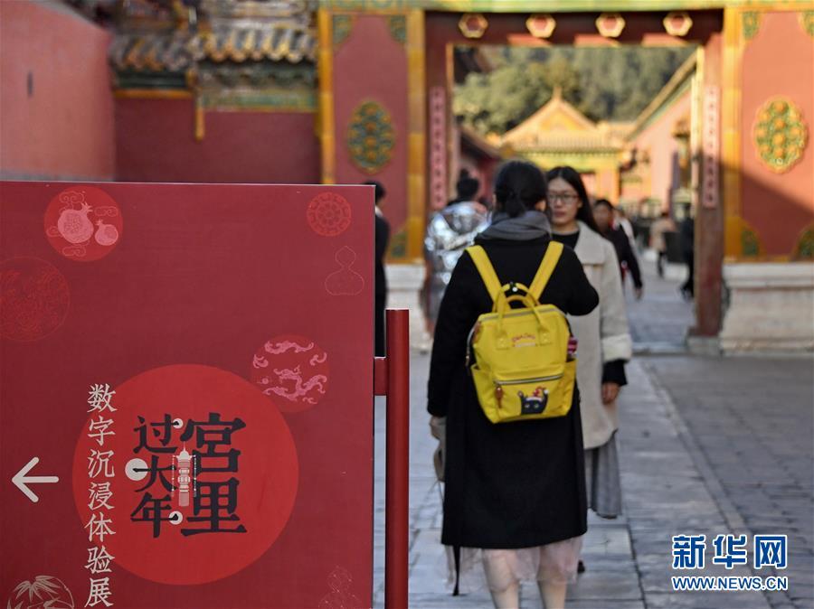 1月25日,游人在故宮內(nèi)游覽拍照。 春節(jié)將至,北京故宮博物院內(nèi)張燈結(jié)彩,到處懸掛著宮燈、萬壽燈、年畫、門神、福字等古代宮廷節(jié)日裝飾品,讓來自國內(nèi)外的游人感受到濃濃的年味。 新華社記者 李欣攝