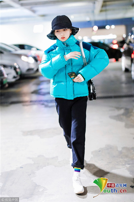 2019年1月31日,上海,張子楓現(xiàn)身機場。她身穿藍色羽絨服,戴著大檐帽也難擋好氣色,雪膚紅唇妝容精致展現(xiàn)女人味。
