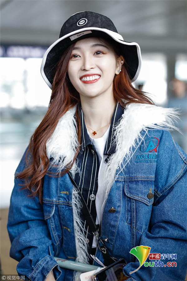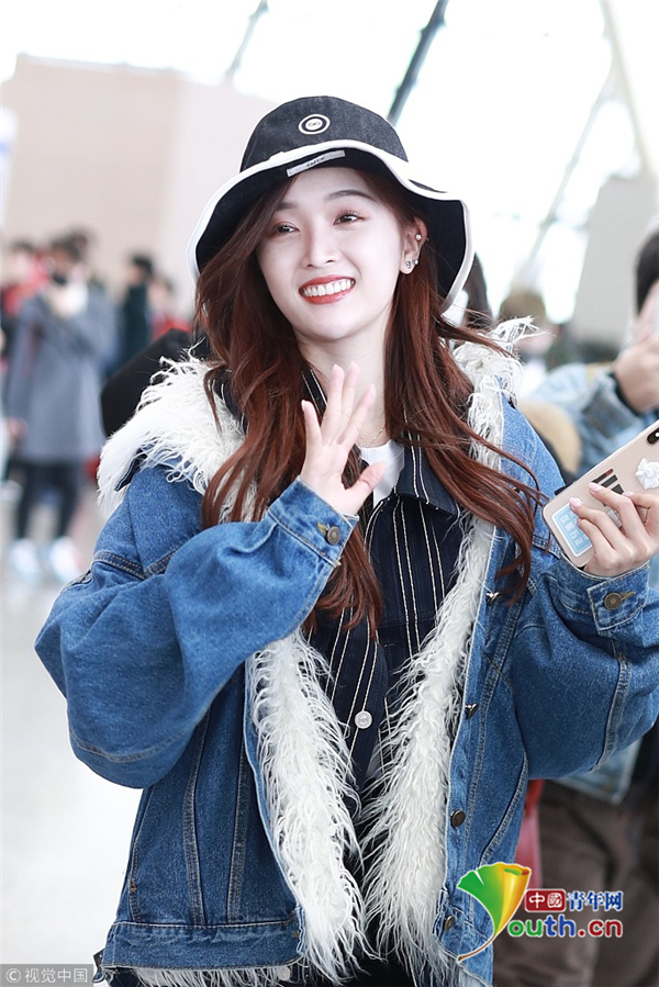 2月2日,上海,吳宣儀頭戴帽子身穿一襲牛仔服現(xiàn)身機場 。她自提大包回家過年 ,獲粉絲拜年祝福 ,吐舌狂賣萌。