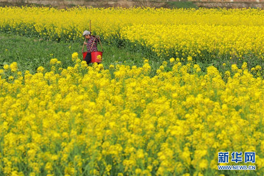 3月19日,游人在下涯鎮(zhèn)油菜花海中游玩。近日,浙江省建德市下涯鎮(zhèn)油菜花盛開(kāi),吸引不少游客前來(lái)踏春。 新華社記者翁忻旸攝