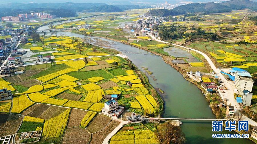 3月20日在貴州錦屏縣敦寨鎮(zhèn)拍攝的春景(無(wú)人機(jī)拍攝)。春分將至,貴州各地成片的油菜花漸次綻放,如同金色的地毯鋪上云貴高原。 新華社記者 歐東衢 攝