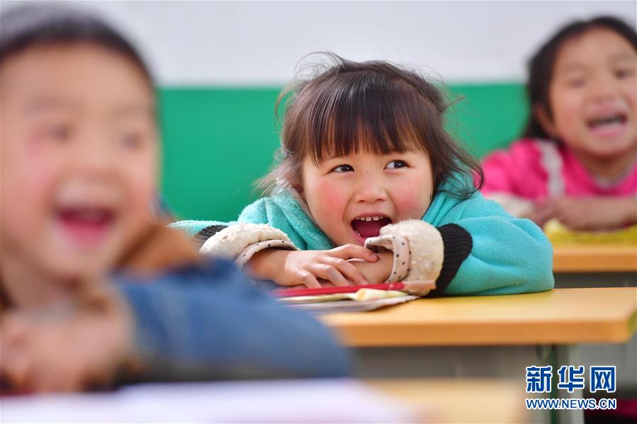 在黔桂烏英苗寨,孩子們在學校里上課(3月27日攝)。
