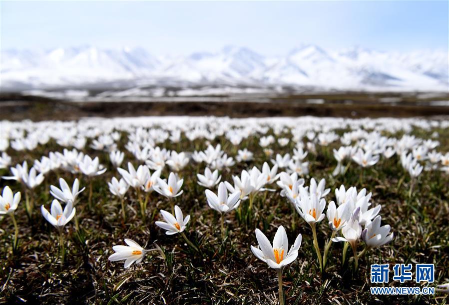 這是新疆那拉提景區(qū)雪山腳下盛開的野百合(4月4日攝)。新華社記者 沙達提 攝