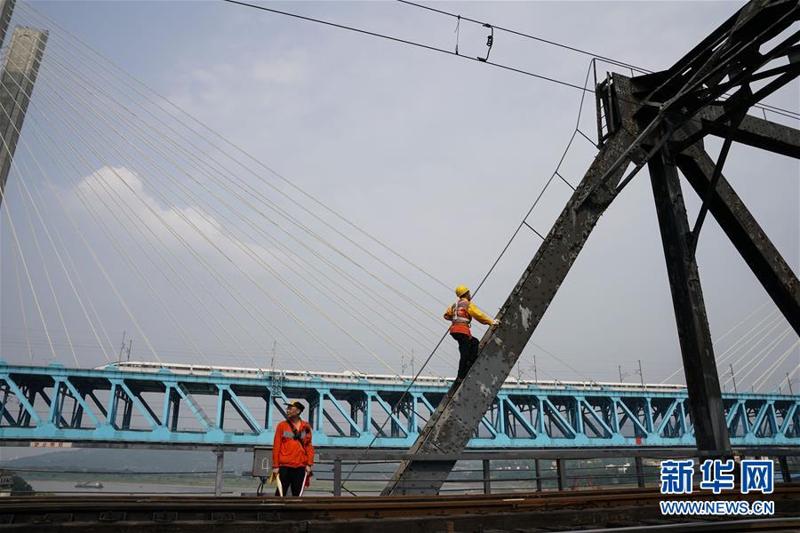中國(guó)鐵路成都局有限公司重慶工務(wù)段的巡檢班組在白沙沱長(zhǎng)江大橋上進(jìn)行巡檢作業(yè)(4月23日攝)。 4月23日下午5點(diǎn)40分,隨著重慶白沙沱長(zhǎng)江大橋通行的最后一列客運(yùn)列車順利通過(guò),這座“服役”了59年的重慶首座長(zhǎng)江大橋進(jìn)入“退役”倒計(jì)時(shí)。4月24日后,所有列車將改線經(jīng)距白沙沱長(zhǎng)江大橋約100米的新白沙沱長(zhǎng)江特大橋通行,新橋“接力”老橋,運(yùn)輸能力將得到大幅提升。 白沙沱長(zhǎng)江大橋于1958年開工,1960年通過(guò)首趟列車,是繼武漢長(zhǎng)江大橋之后的第二座長(zhǎng)江大橋。 新華社記者 劉潺 攝