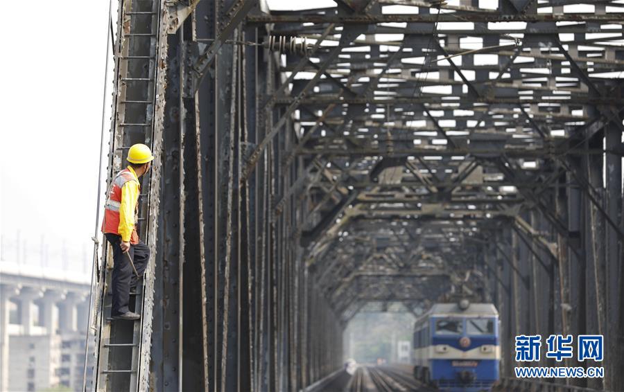中國(guó)鐵路成都局有限公司重慶工務(wù)段53歲的橋隧工唐金華在白沙沱長(zhǎng)江大橋的鋼架上檢查鋼梁的銹蝕情況(4月23日攝)。 4月23日下午5點(diǎn)40分,隨著重慶白沙沱長(zhǎng)江大橋通行的最后一列客運(yùn)列車順利通過(guò),這座“服役”了59年的重慶首座長(zhǎng)江大橋進(jìn)入“退役”倒計(jì)時(shí)。4月24日后,所有列車將改線經(jīng)距白沙沱長(zhǎng)江大橋約100米的新白沙沱長(zhǎng)江特大橋通行,新橋“接力”老橋,運(yùn)輸能力將得到大幅提升。 白沙沱長(zhǎng)江大橋于1958年開工,1960年通過(guò)首趟列車,是繼武漢長(zhǎng)江大橋之后的第二座長(zhǎng)江大橋。 新華社記者 劉潺 攝