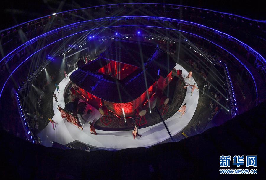 4月27日,表演結(jié)束后,模特在向觀眾致意。 當(dāng)日,土樓光語國際時尚大秀在福建省南靖縣的土樓裕昌樓內(nèi)舉行。這場融匯文化、時尚與旅游元素的大秀,通過傳統(tǒng)與時尚的有機融合,展現(xiàn)南靖土樓及文化的魅力和風(fēng)采。 新華社記者魏培全攝