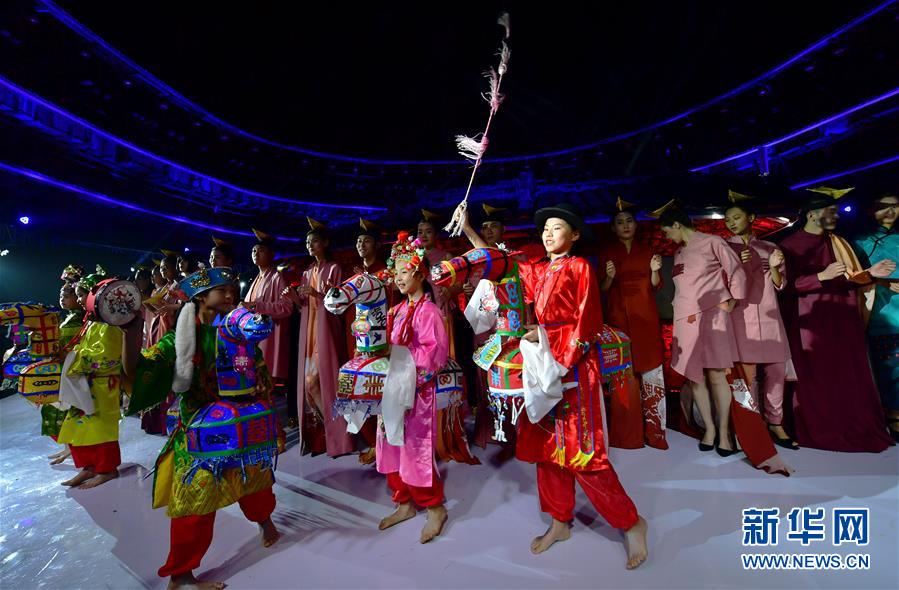 4月27日,小模特身穿民族服飾展示土樓當(dāng)?shù)氐姆俏镔|(zhì)文化遺產(chǎn)竹馬戲。 當(dāng)日,土樓光語國際時尚大秀在福建省南靖縣的土樓裕昌樓內(nèi)舉行。這場融匯文化、時尚與旅游元素的大秀,通過傳統(tǒng)與時尚的有機融合,展現(xiàn)南靖土樓及文化的魅力和風(fēng)采。 新華社記者魏培全攝