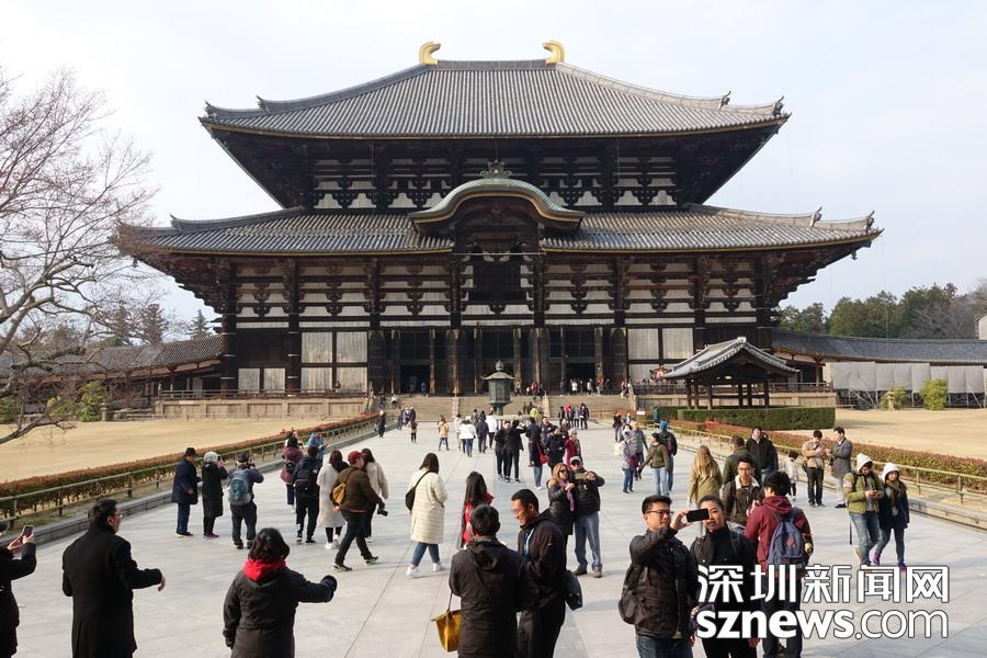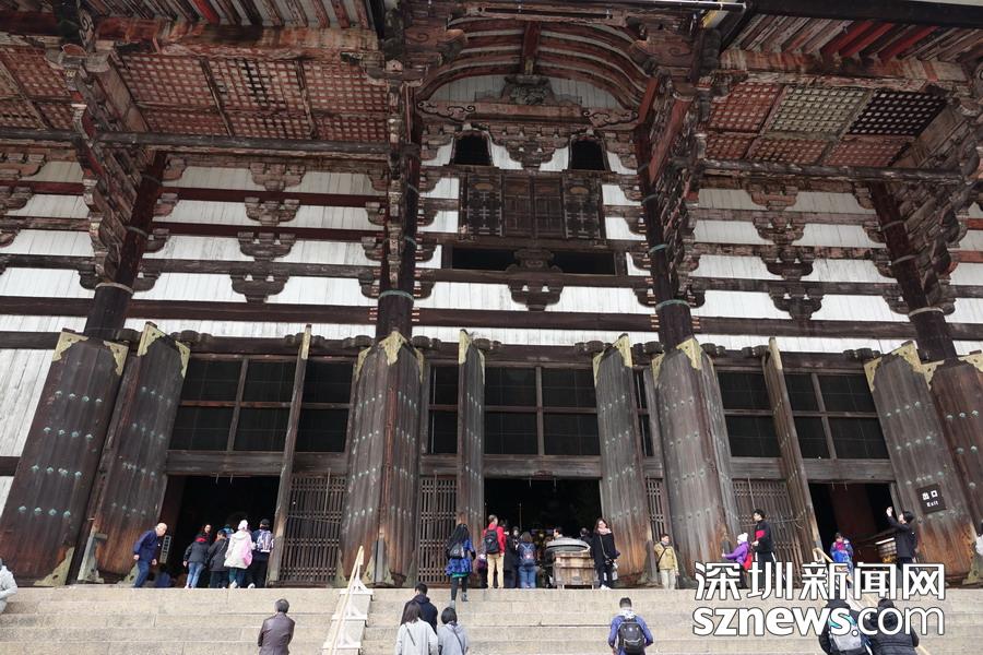 東大寺大佛殿正面寬度57米,深50米,為世界最大的木造建筑。殿內(nèi)放置著高15米以上的盧舍那佛像。中國(guó)唐代高僧鑒真和尚曾在這里設(shè)壇授戒。李仁奇 攝