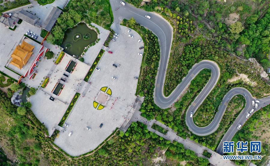 這是5月2日拍攝的盤山風(fēng)景名勝區(qū)正門景觀(無(wú)人機(jī)拍攝)。新華社記者 岳月偉 攝