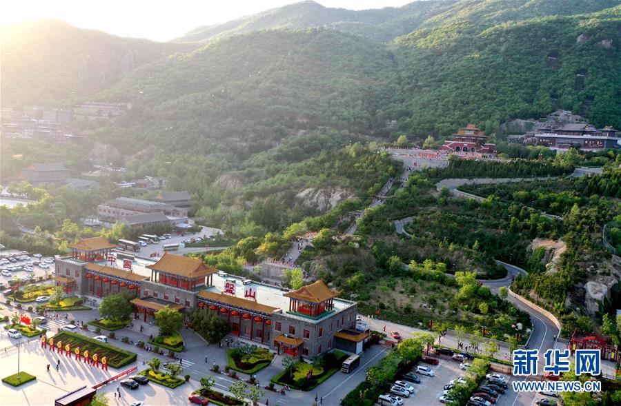 這是5月2日拍攝的盤山風景名勝區(qū)正門景觀(無人機拍攝)。新華社記者 岳月偉 攝