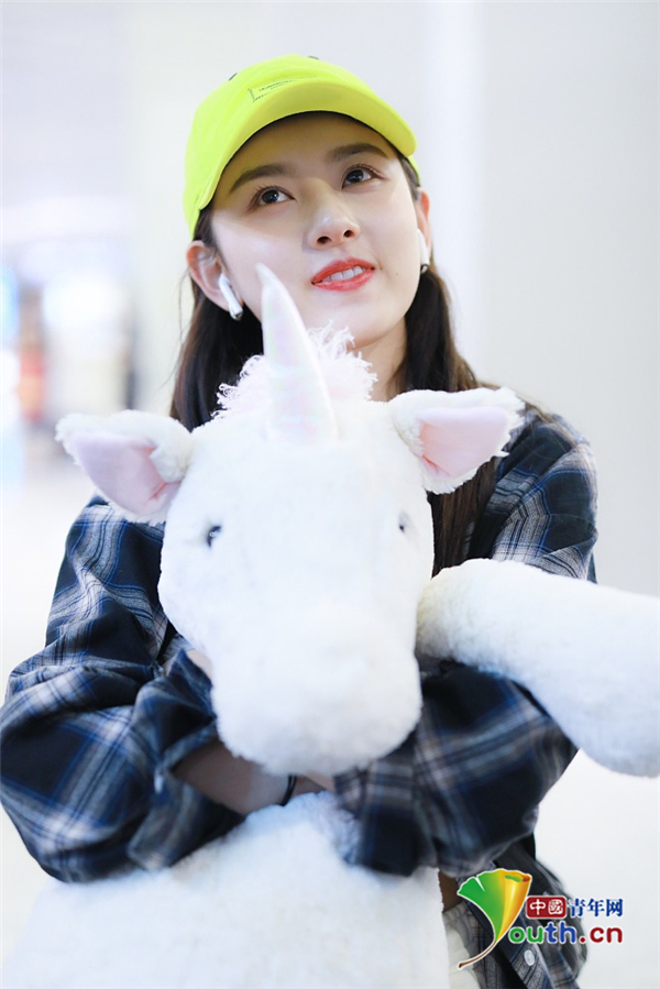 2019年5月12日,北京,宋祖兒現(xiàn)身機場。她穿格子襯衫戴小黃帽揮手大步走,元氣少女活力滿滿,抱玩偶變身獨角獸女孩童趣十足超可愛。