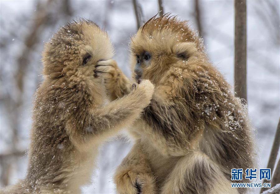 在神農(nóng)架國家公園大龍?zhí)杜臄z的金絲猴(2017年1月10日攝)。 新華社記者 杜華舉 攝