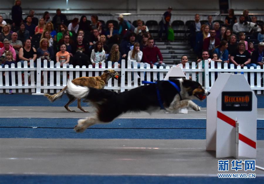 5月19日,在德國(guó)多特蒙德舉行的寵物展上,兩只狗狗參加速度競(jìng)賽。 為期三天的德國(guó)多特蒙德“狗和貓”寵物展19日落幕。寵物展期間,人們帶著自己的“萌寵”來(lái)到會(huì)場(chǎng),參與寵物跳水、舞蹈、選美等趣味比賽,并與其他寵物愛好者及展商交流互動(dòng)。 新華社記者逯陽(yáng)攝