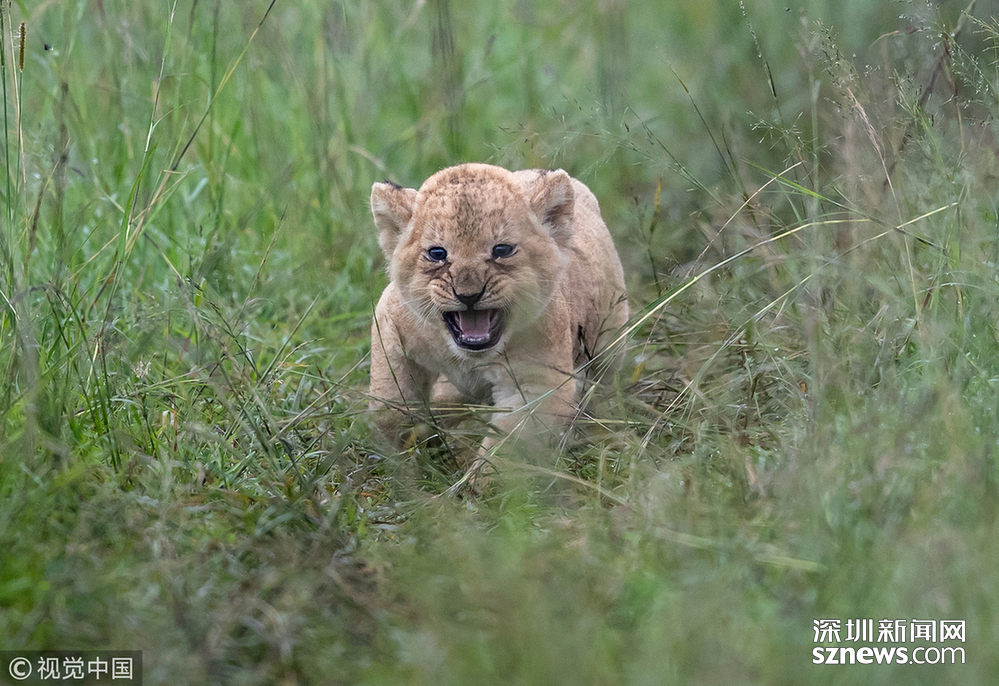 英國野生動(dòng)物攝影師Paul Goldstein在肯尼亞的馬賽馬拉拍到了一頭小獅子被媽媽教訓(xùn)的場面。