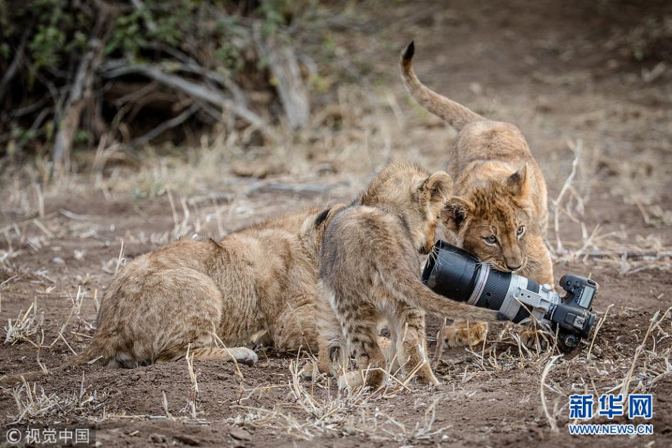 近日,非洲博茨瓦納馬沙圖野生動物保護區(qū)內一頭獅子叼起攝影師掉落在地上的相機,之后還將相機交給小獅子們玩耍,看起來十分好奇,而攝影師非常無奈?,F年57歲的叢林探險家Barbara Jensen Vorster在一輛越野車上為馬沙圖野生動物保護區(qū)的獅群拍照時,相機不小心掉到了地上。砰的一聲響驚動了母獅子,它向攝影師方向移動,迫使探險隊撤退。(圖片來源:視覺中國)