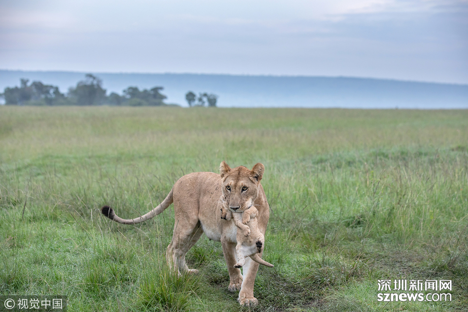 英國(guó)野生動(dòng)物攝影師Paul Goldstein在肯尼亞的馬賽馬拉拍到了一頭小獅子被媽媽教訓(xùn)的場(chǎng)面。