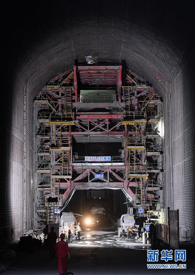 這是烏東德水電站泄洪洞中的鋼模臺(tái)車(chē)施工現(xiàn)場(chǎng)(5月31日攝)。 新華社記者陳曄華攝
