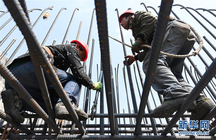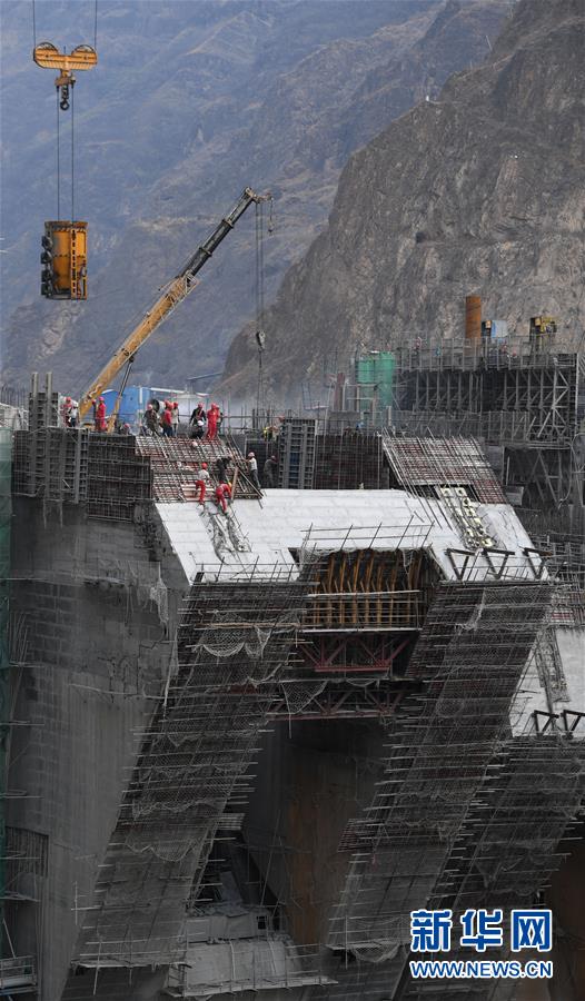5月31日,工人在烏東德水電站的二道壩工地施工。 新華社記者陳曄華攝