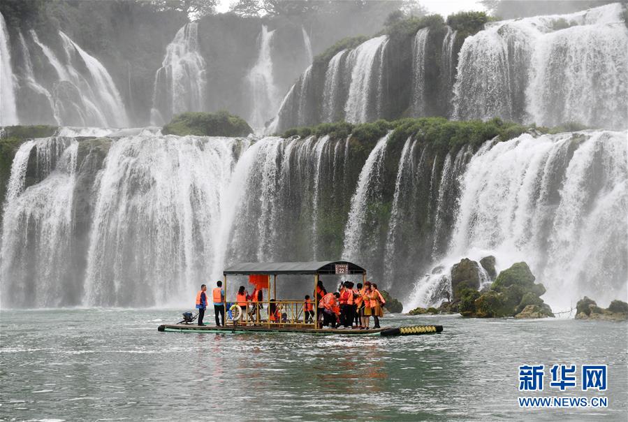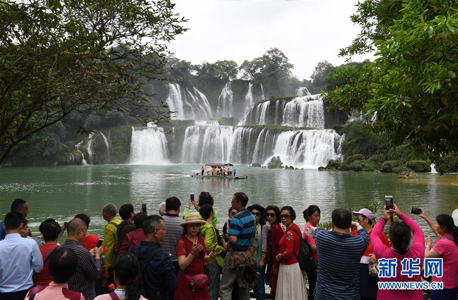 近日,隨著降雨增多,位于中越邊境的廣西大新縣德天瀑布水量增大,吸引大批游客前來(lái)觀(guān)光游覽。