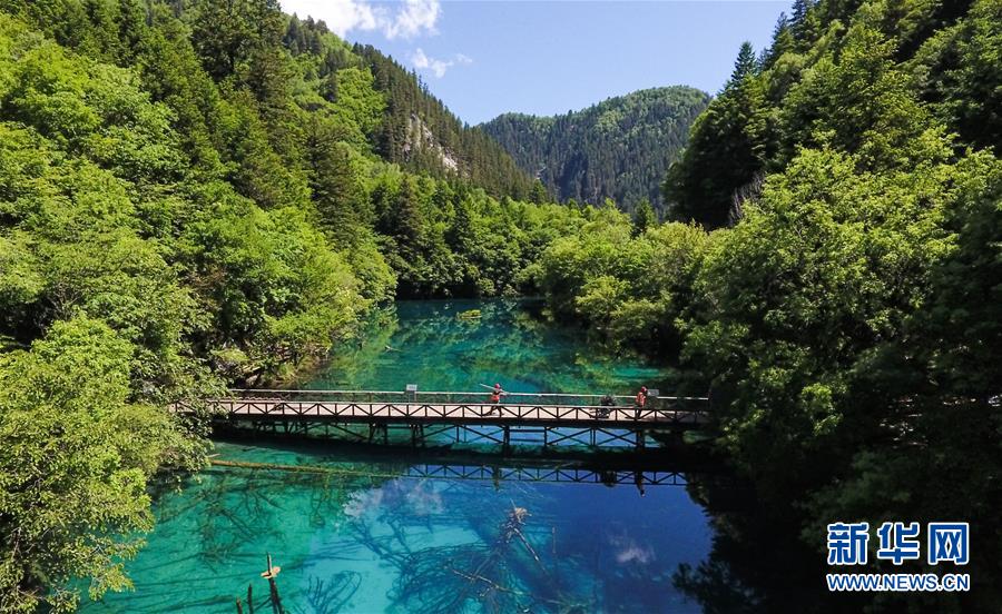 這是九寨溝景區(qū)的五花海景點(diǎn)(6月5日無人機(jī)拍攝)。新華社記者薛玉斌攝